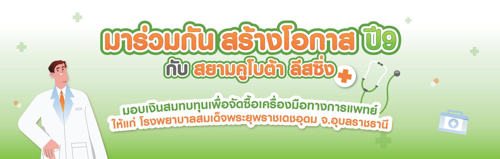คุณปิยะชาติ ศรีมารุต กรรมการผู้จัดการ บริษัท สยามคูโบต้า ลีสซิ่ง จำกัด พร้อมคณะผู้บริหาร มอบเงินจำนวน 200,000 บาท และเป็นตัวแทนมอบเงินบริจาคสมทบของพนักงานสยามคูโบต้าและบริษัทในเครือ จำนวน 255,999 บาท รวมยอดเงินบริจาค 455,999 บาท ในโครงการ ✨“มาร่วมกันสร้างโอกาส กับสยามคูโบต้า ลีสซิ่ง ปี9”✨ เพื่อสมทบทุนซื้อเครื่องมือทางการแพทย์ที่ได้รับความเสียหาย จากเหตุการณ์เพลิงไหม้ โดยมีนายแพทย์ประเสริฐ ศรีสารคาม ผู้อำนวยการโรงพยาบาลสมเด็จพระยุพราชเดชอุดม เป็นผู้รับมอบ เมื่อวันที่ 26 กันยายน 2568