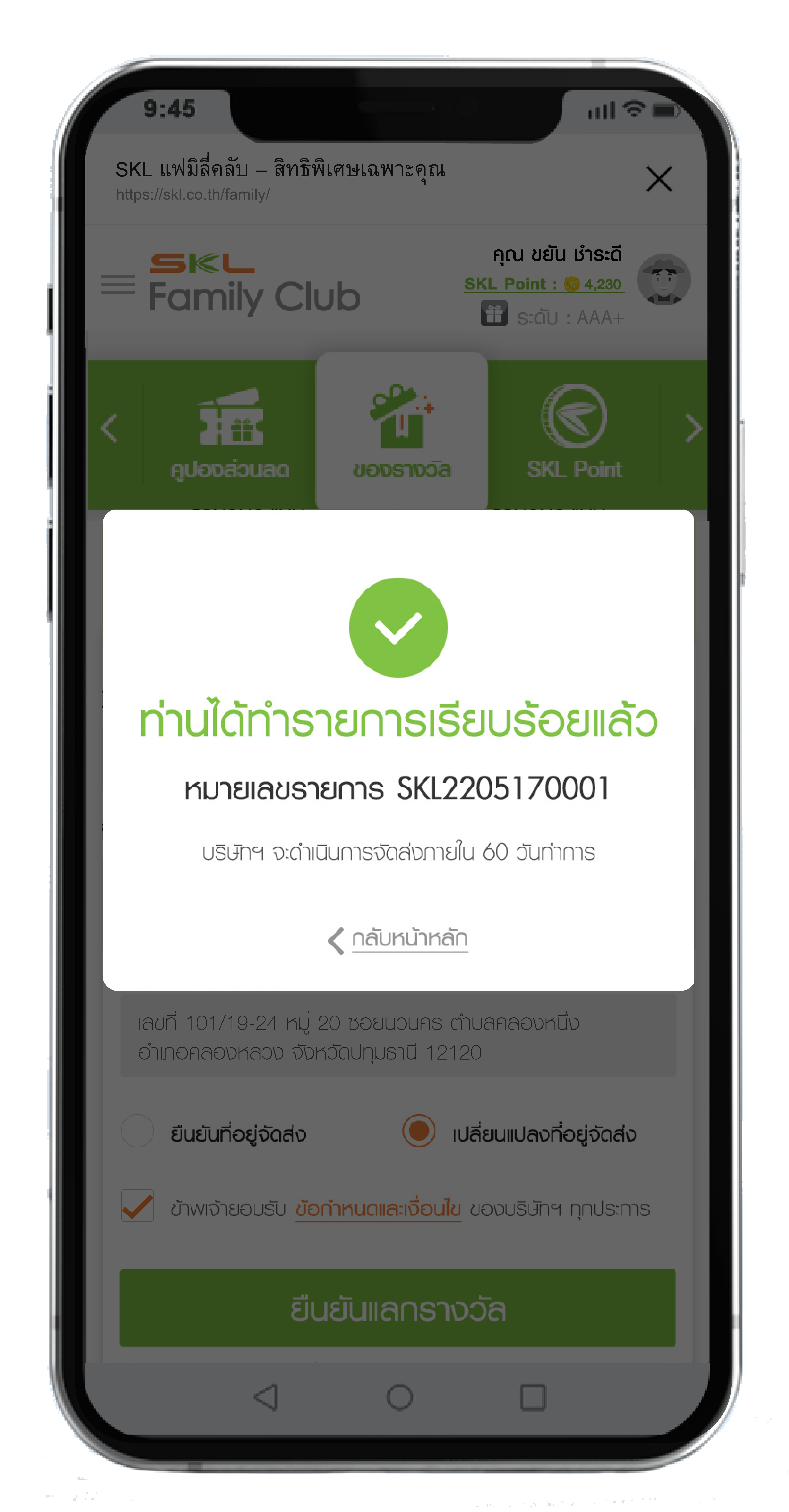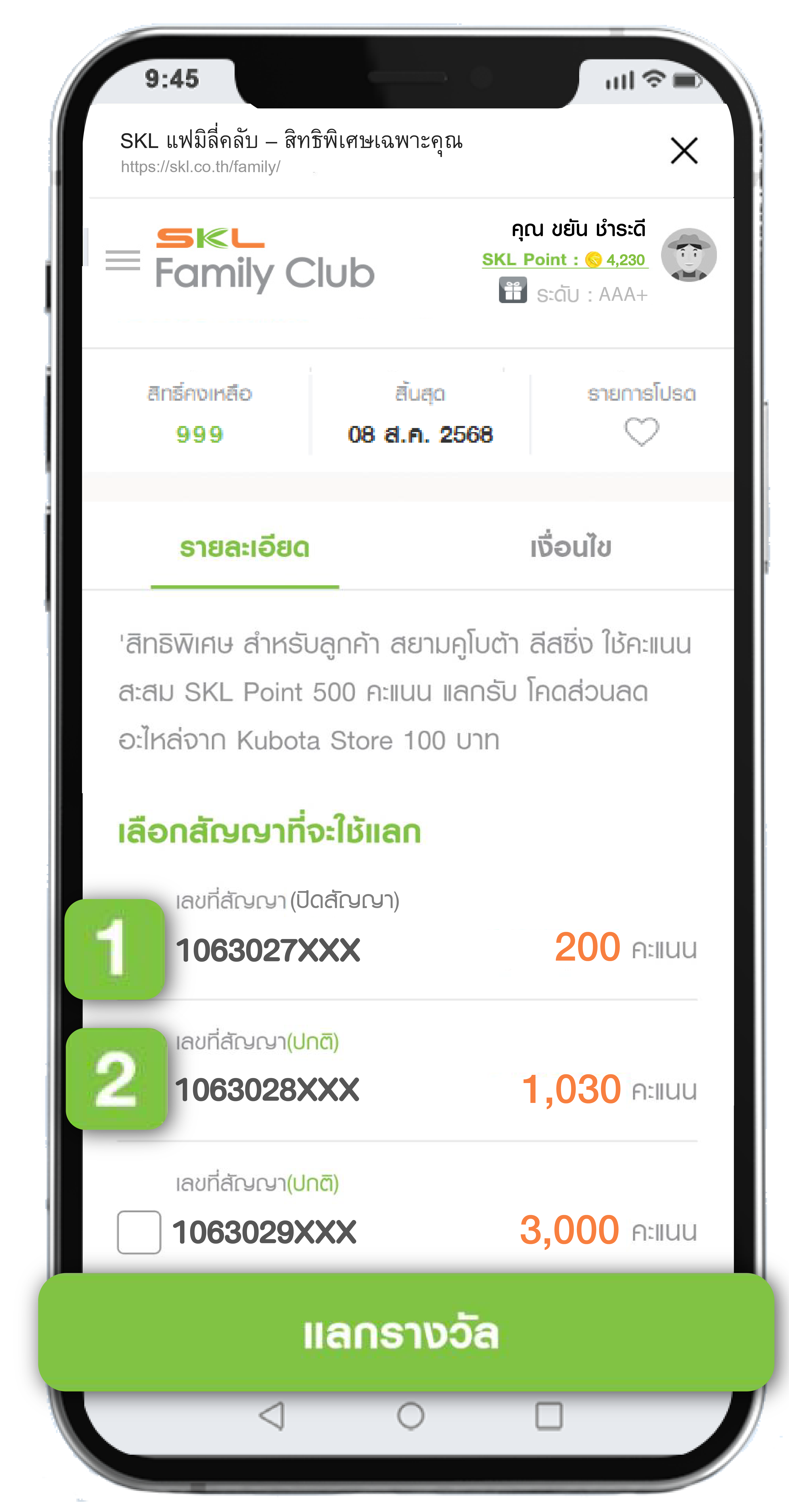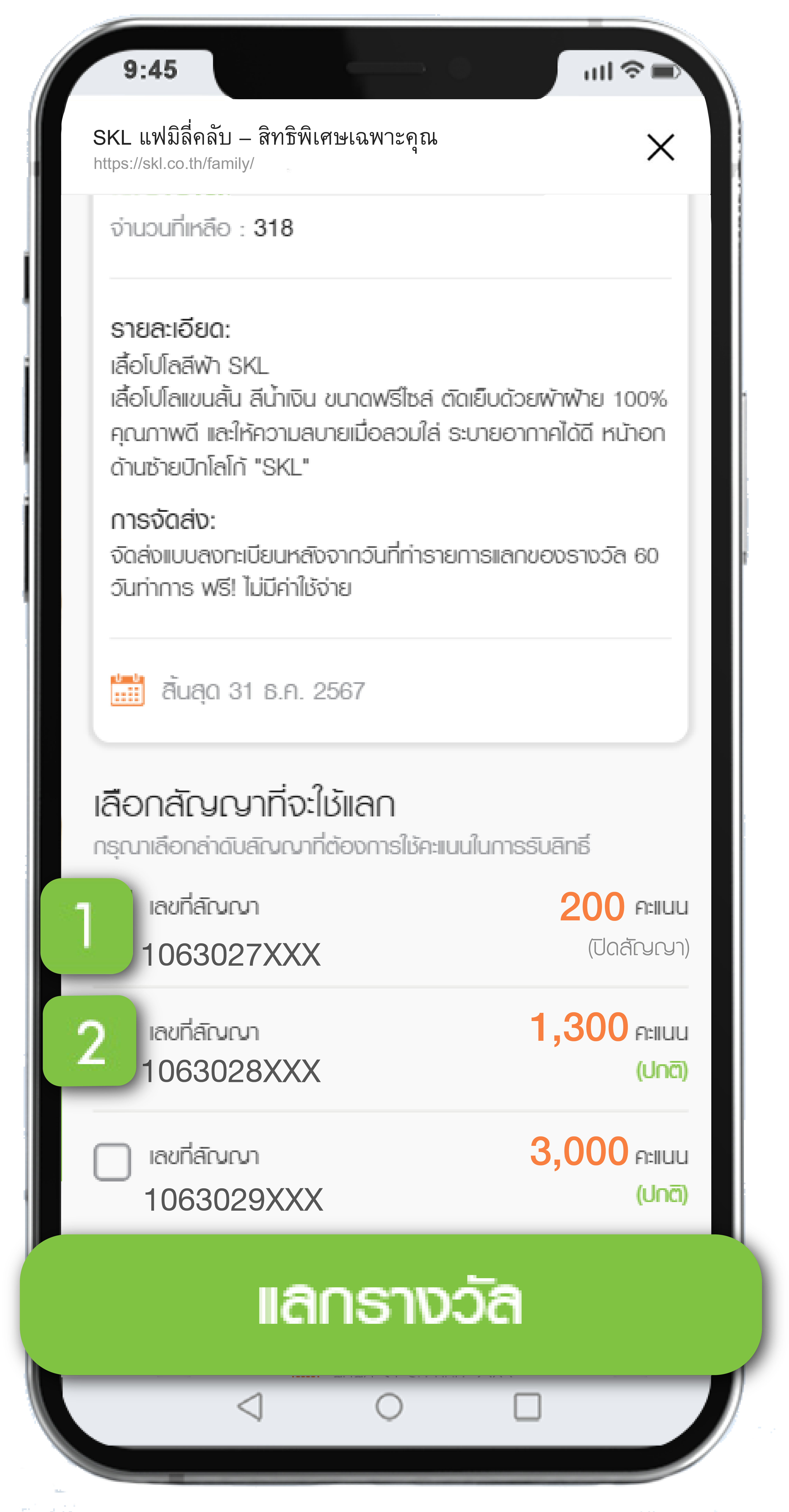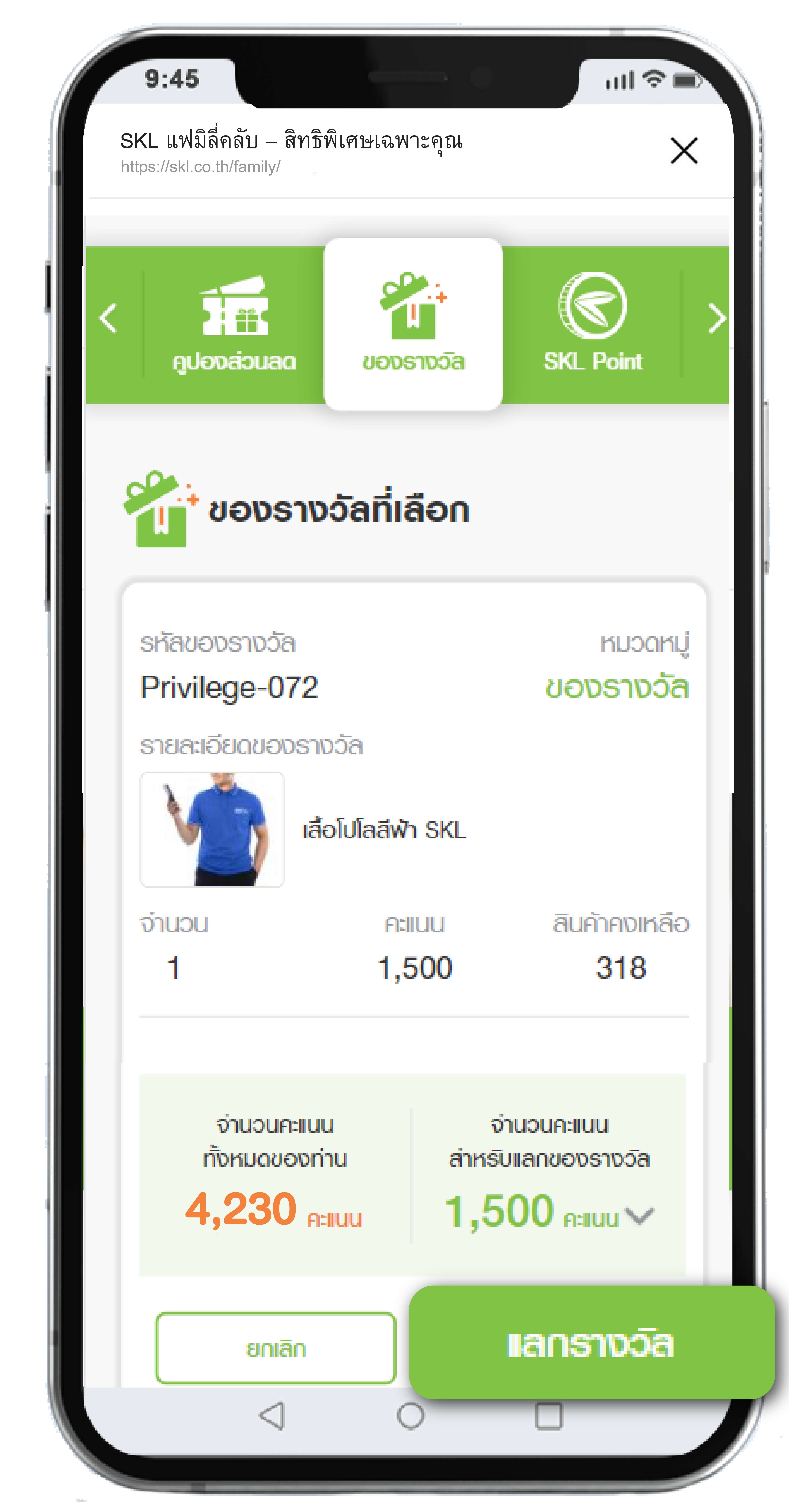 ขั้นตอนการใช้คะแนนสะสมแลกของรางวัล SKL