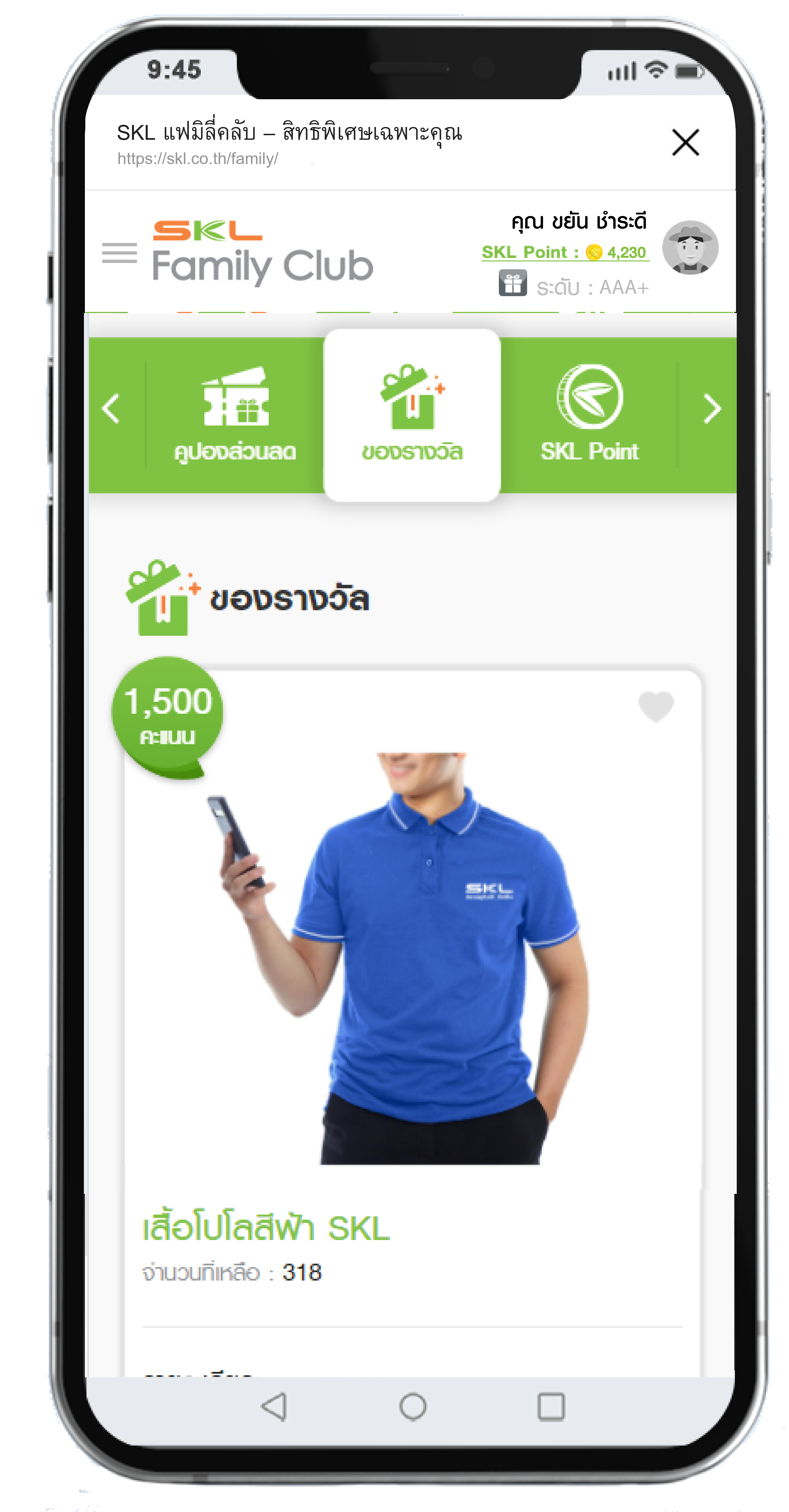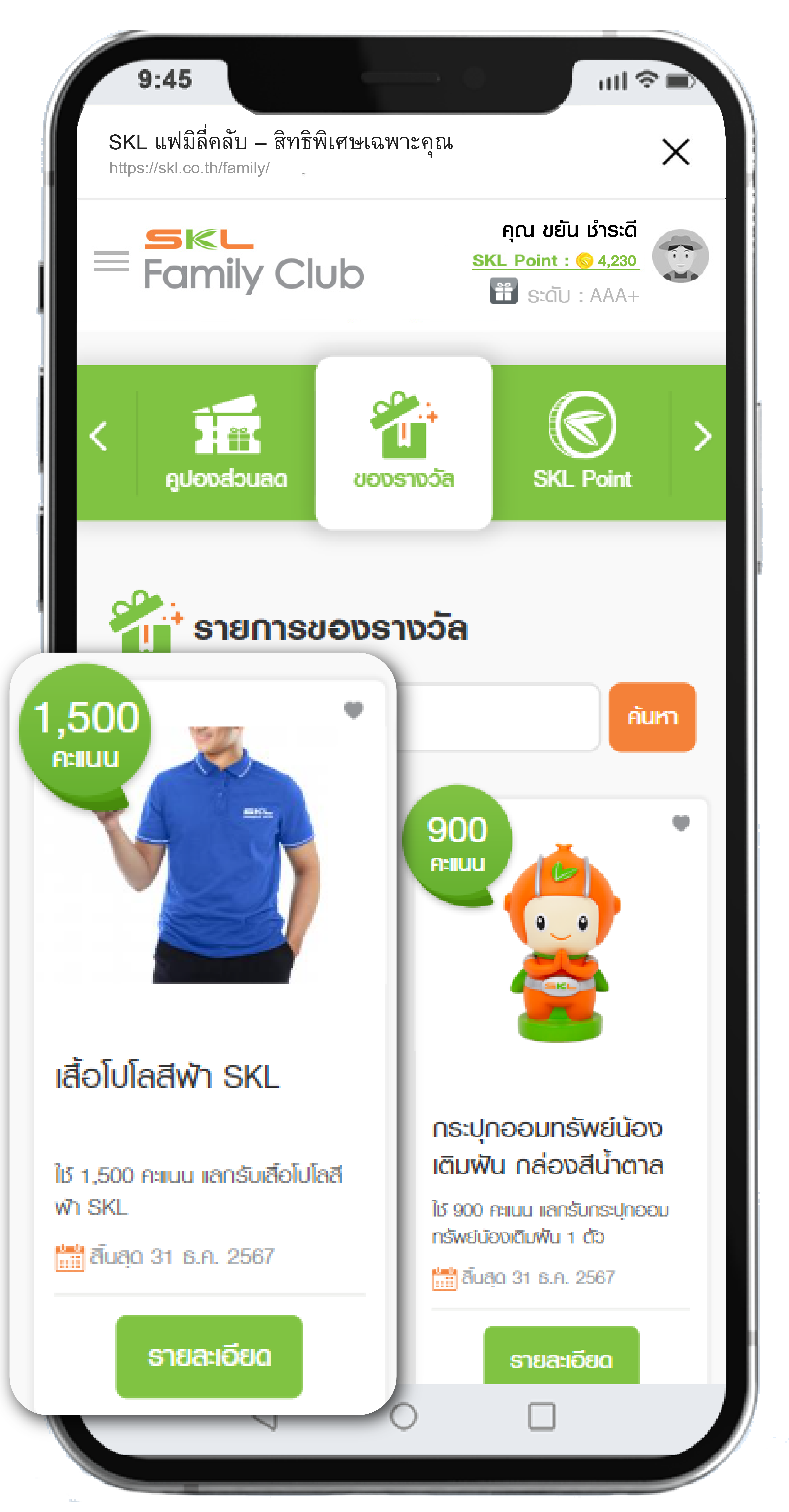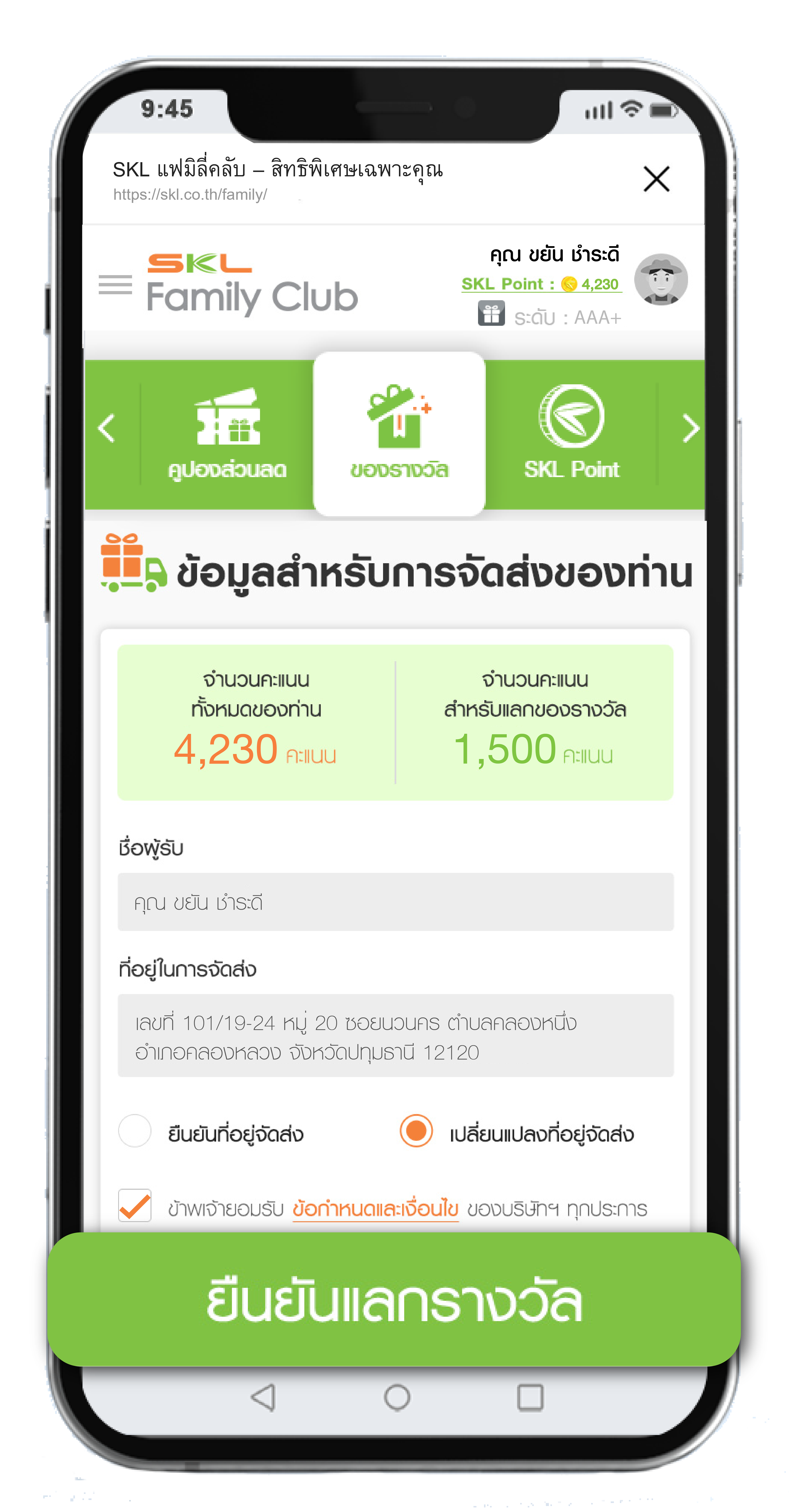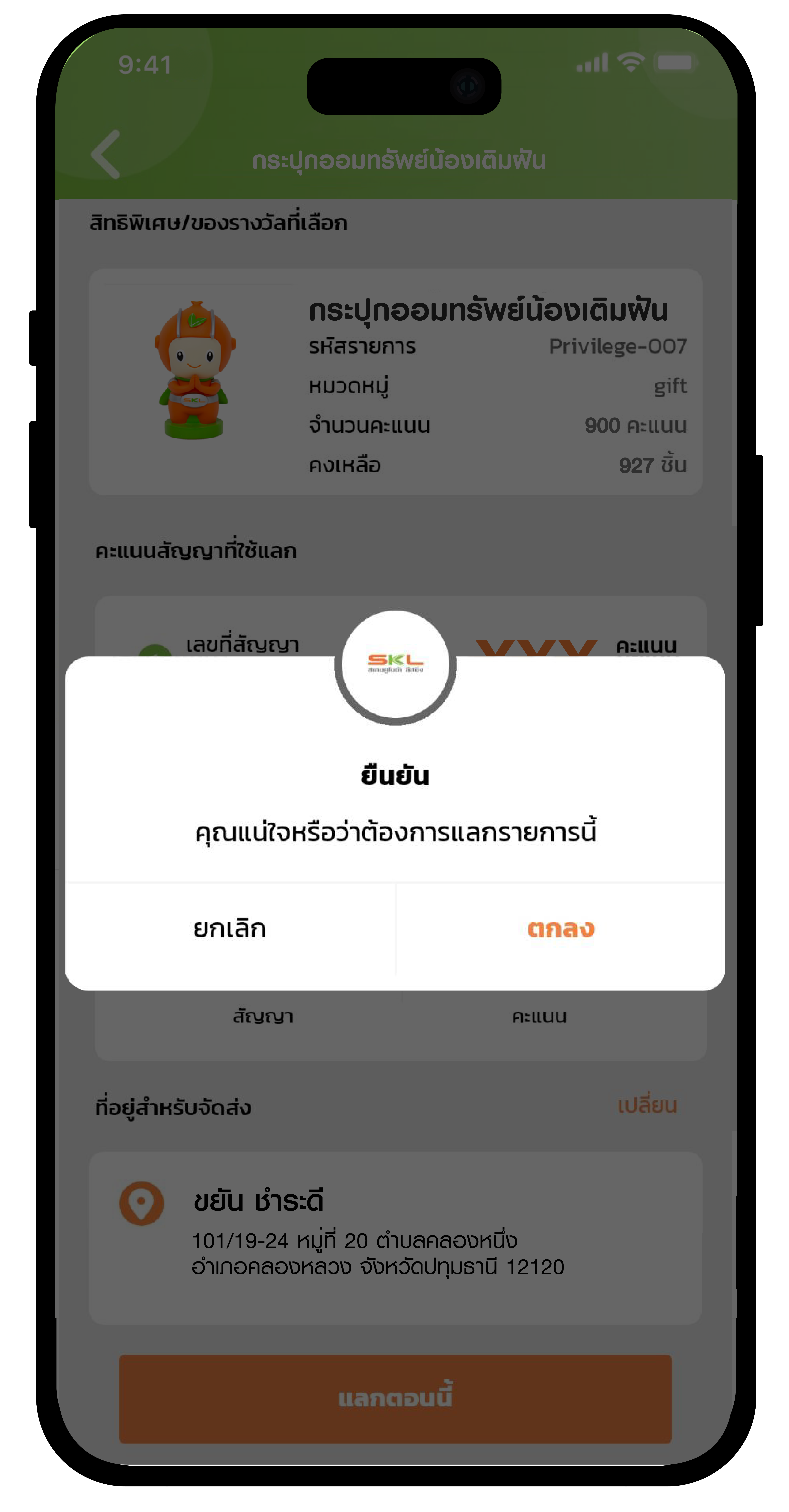 ขั้นตอนการใช้คะแนนสะสมแลกของรางวัล SKL