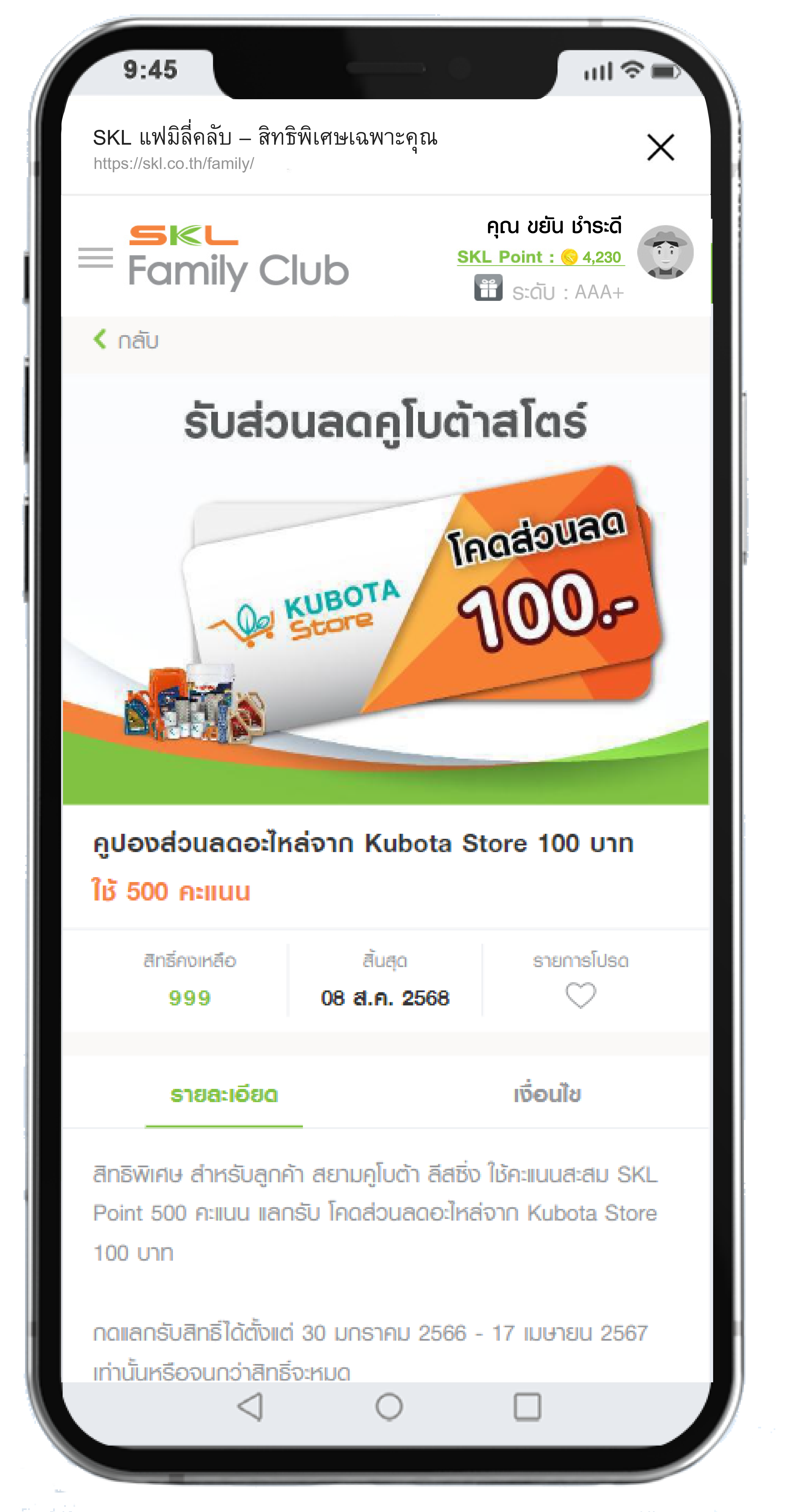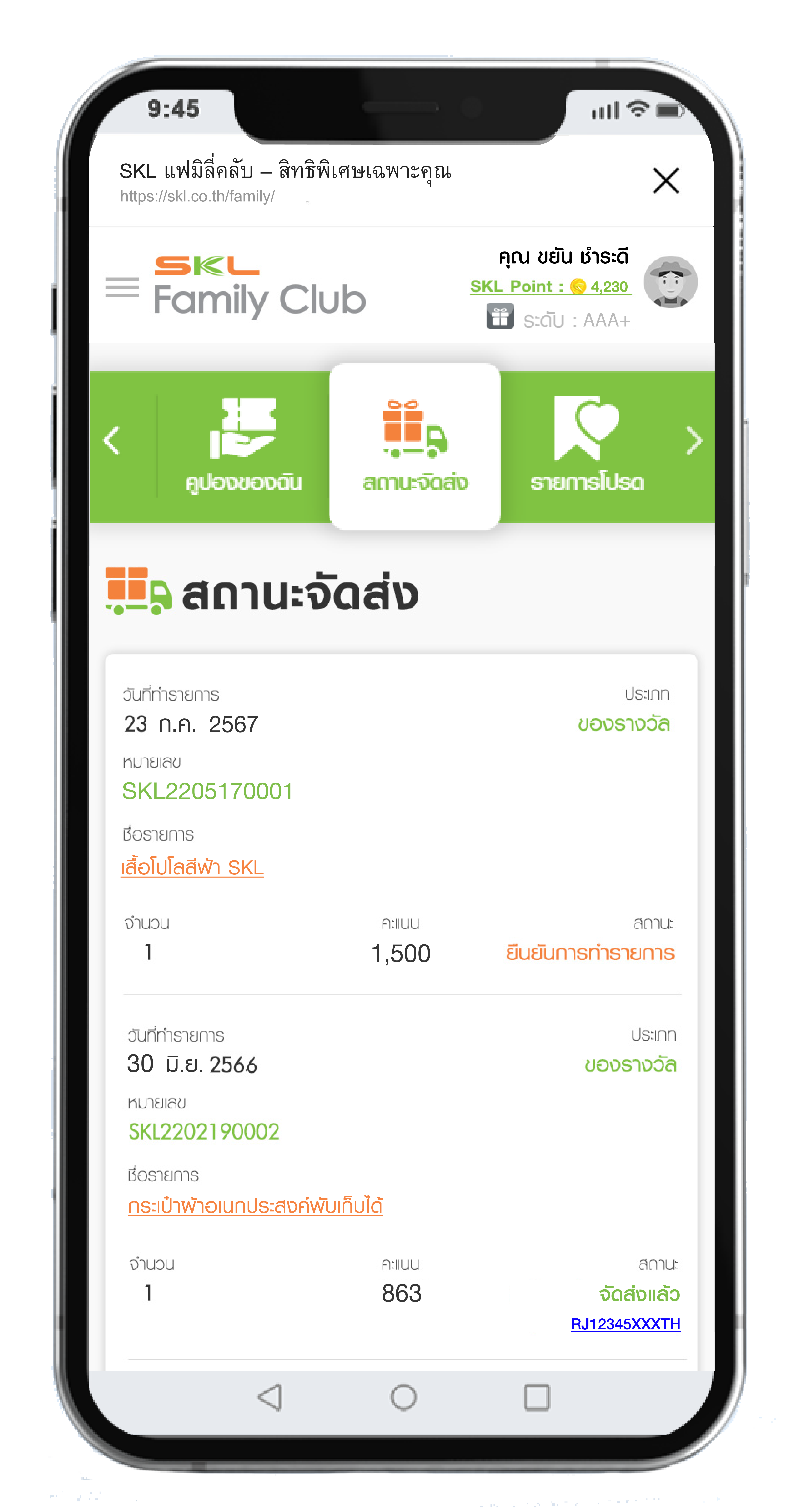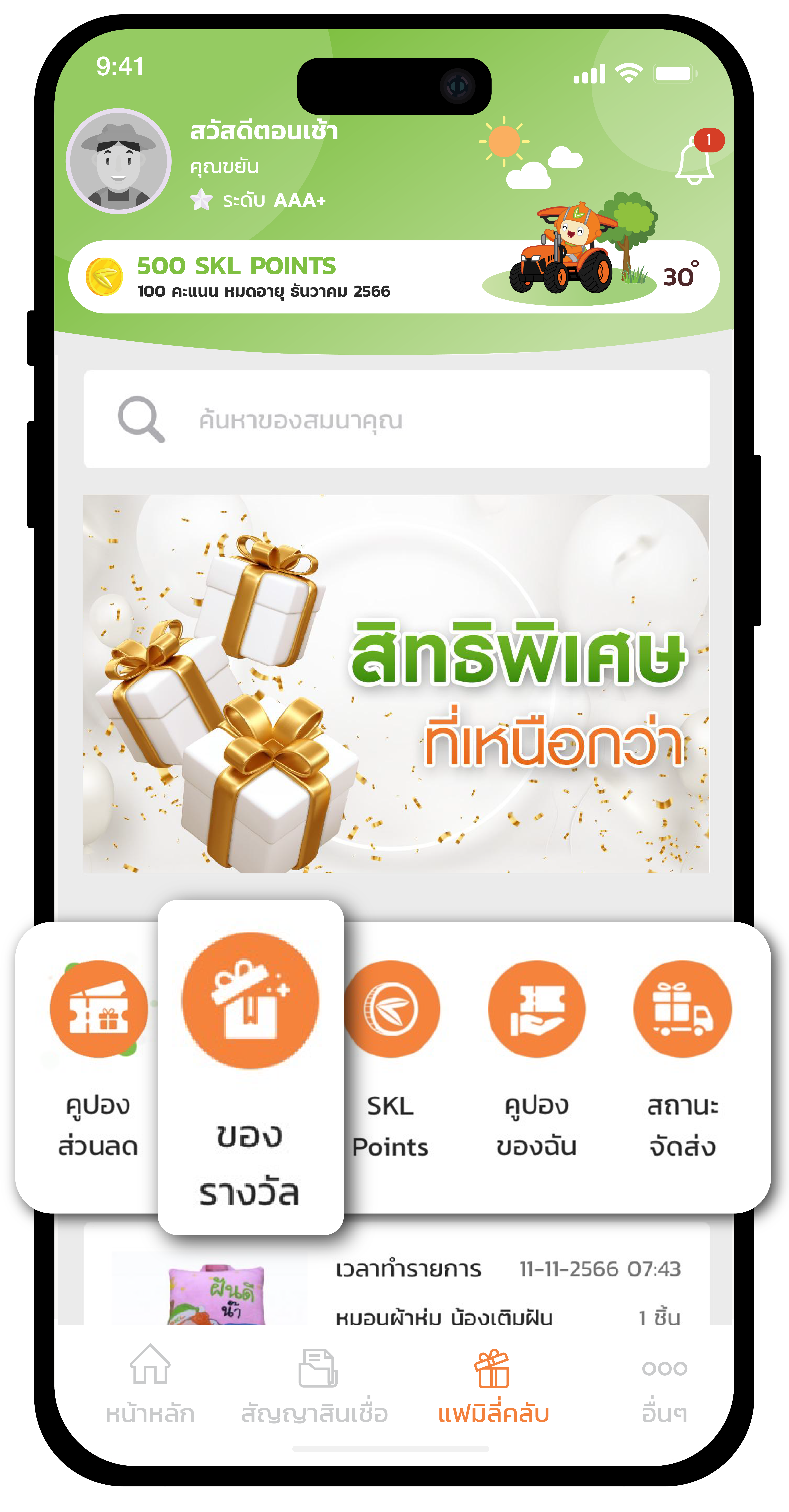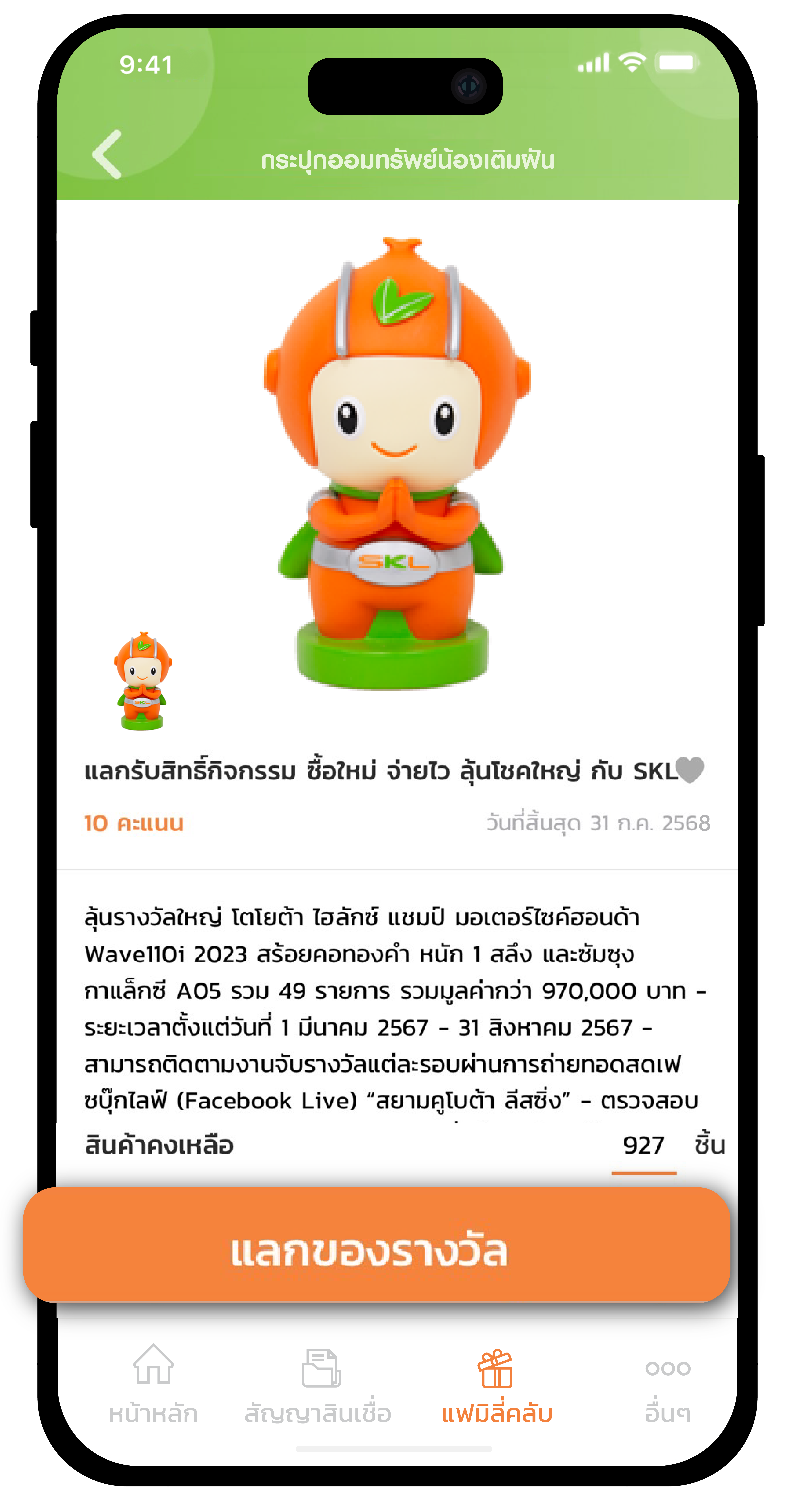 ขั้นตอนการใช้คะแนนสะสมแลกของรางวัล SKL