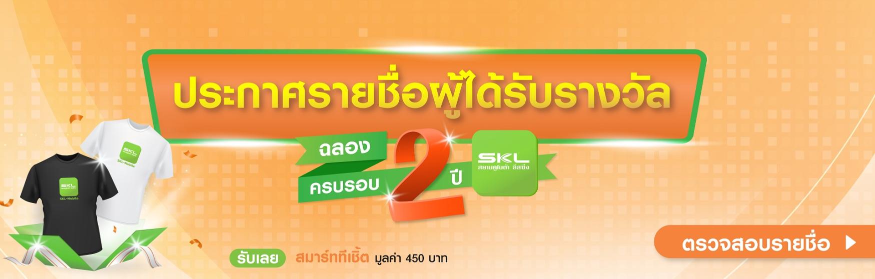 ประกาศรายชื่อผู้ได้รับรางวัล กิจกรรม “ฉลองครบรอบ 2 ปี SKL โมบายแอปฯ ”