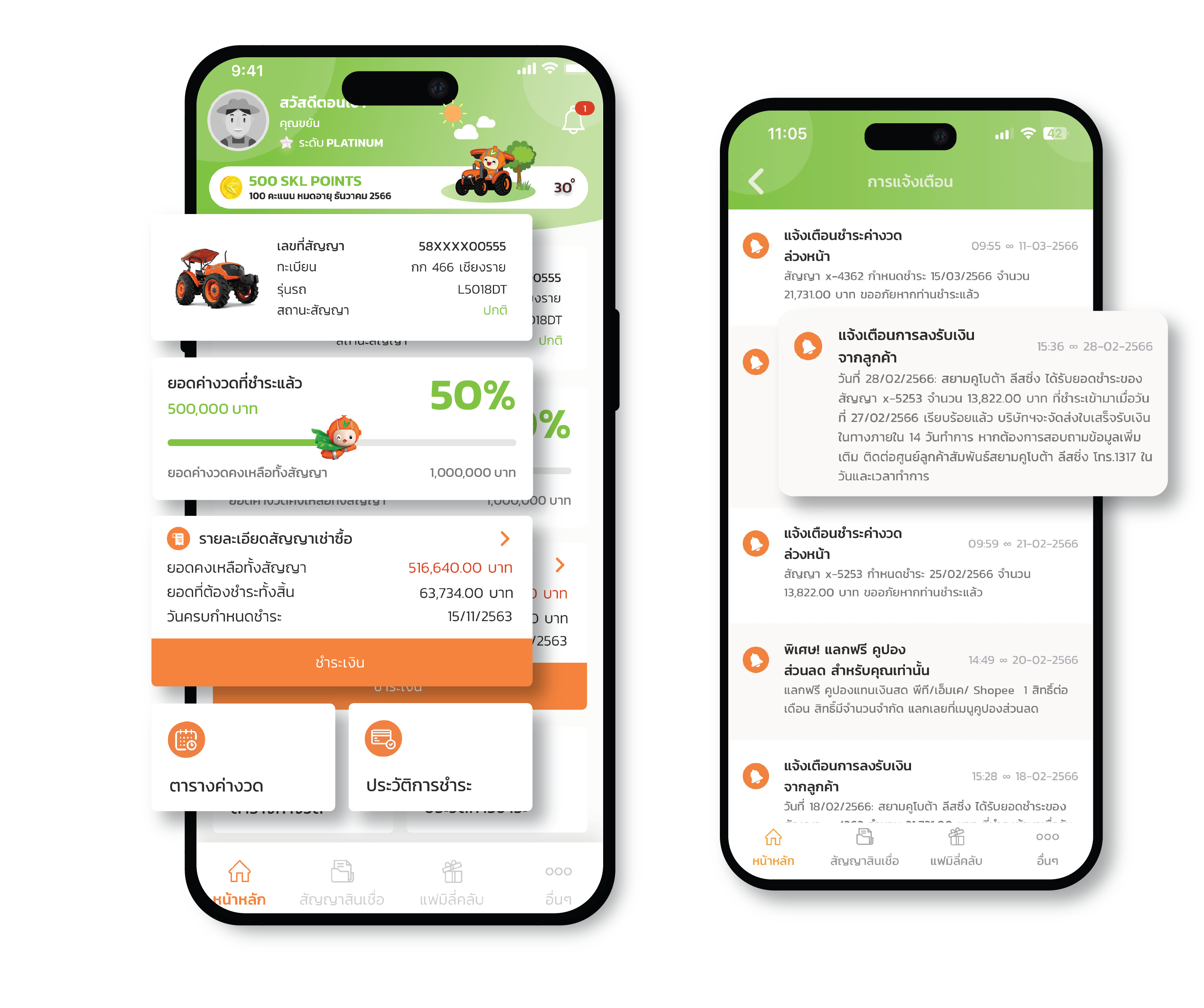 ตรวจสอบข้อมูลสัญญาเช่าซื้อ และข้อมูลค่างวดได้ง่าย ใช้งานสะดวก พร้อมบริการแจ้งเตือนชำระค่างวด